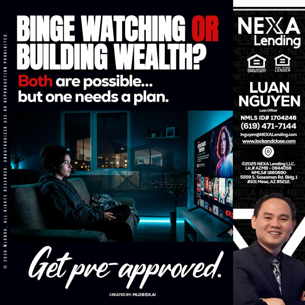 Hi, my name is Luan Nguyen. I’m a Loan Officer with NEXA Lending LLC., offering personalized mortgage solutions, fast customized quotes, great rates and service with integrity.