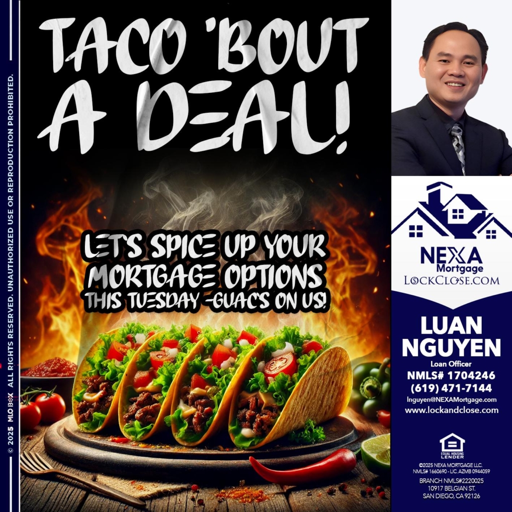 TACO TUESDAY As brokers, we shop your scenario with 30+ lenders to get you the best rate.